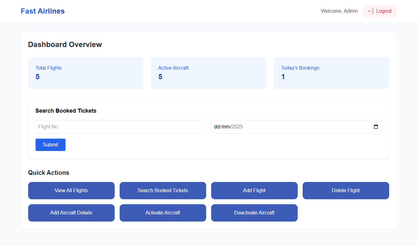 Searching for flights efficiently is critical for both customer support and internal operations. To streamline this process, we enhanced the flight search functionality with smart filters, including departure and arrival cities, dates, aircraft type, and flight status. Results are now displayed with key details—such as timings, seat availability, and booking status—at a glance. These improvements enable staff to quickly locate relevant flights, assist customers faster, and manage schedules with greater accuracy.